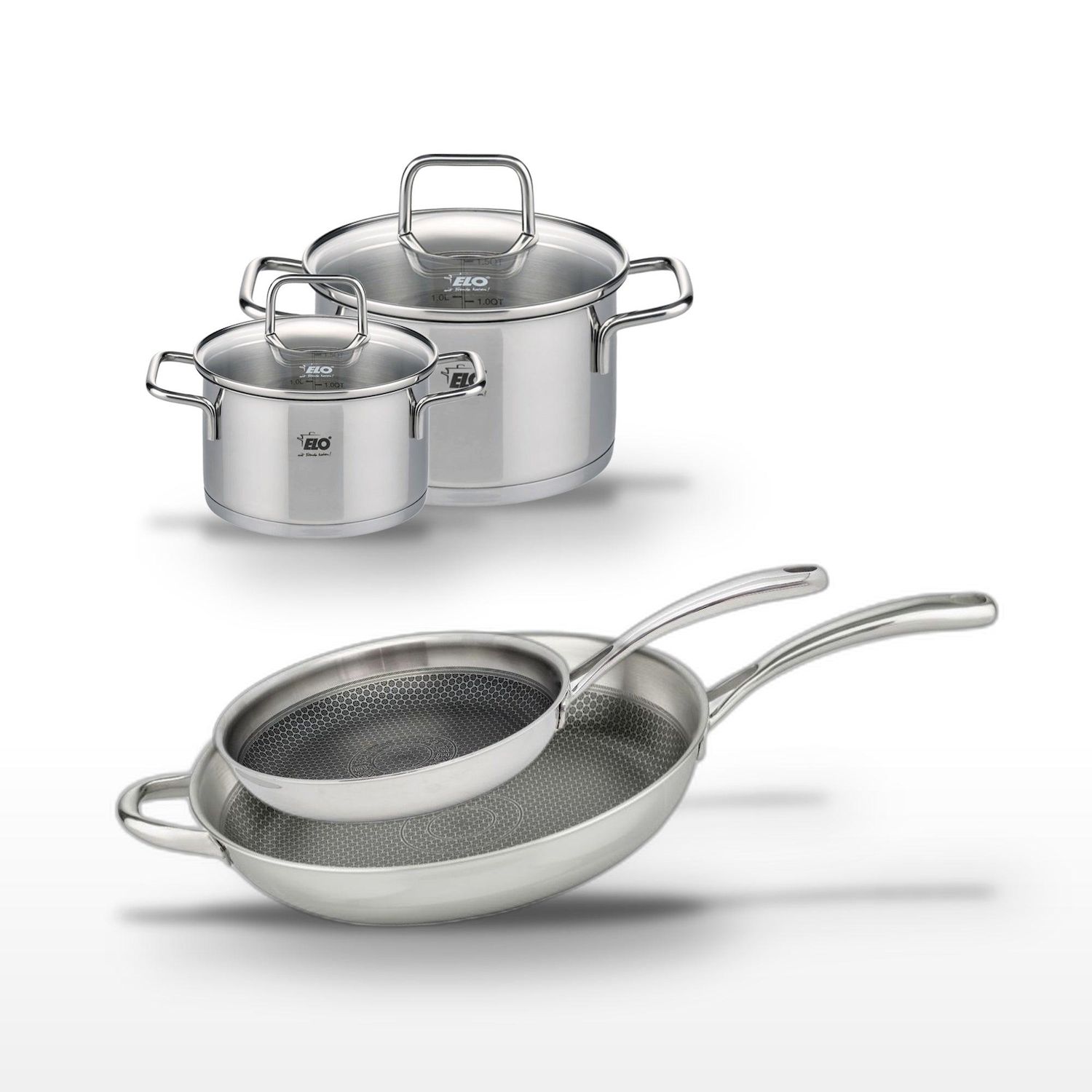 - DESCRIPTION : Cet ensemble Elo comprend des poêles en inox 18/10 et des faitouts en inox, parfaits pour tous les types de cuisson.