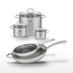 - COMPOSITION : Poêles en acier inoxydable 18/10 avec revêtement antiadhésif. Faitouts en inox avec couvercles en verre. Matériaux de haute qualité pour une durabilité exceptionnelle.