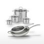 - COMPOSITION : Poêles en acier inoxydable 18/10 avec revêtement, faitouts en inox et verre, garantissant une longue durée de vie.