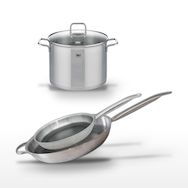 - COMPOSITION : COMPOSITION : Acier inoxydable 18/10, aluminium, verre. Revêtement antiadhésif ELODUR® Select sans PFAS pour une cuisine saine et un nettoyage facile.