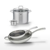 - COMPOSITION : Acier inoxydable 18/10 pour les poêles et faitouts, avec revêtement antiadhésif et fond capsulé pour une répartition homogène de la chaleur.