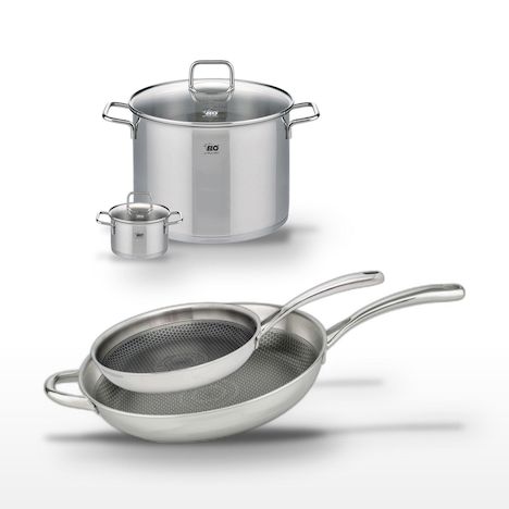 - PETIT + : Le revêtement ELODUR® Professional sans PFAS des poêles assure une cuisson sans attache et saine, tandis que les faitouts préservent les vitamines des aliments.
