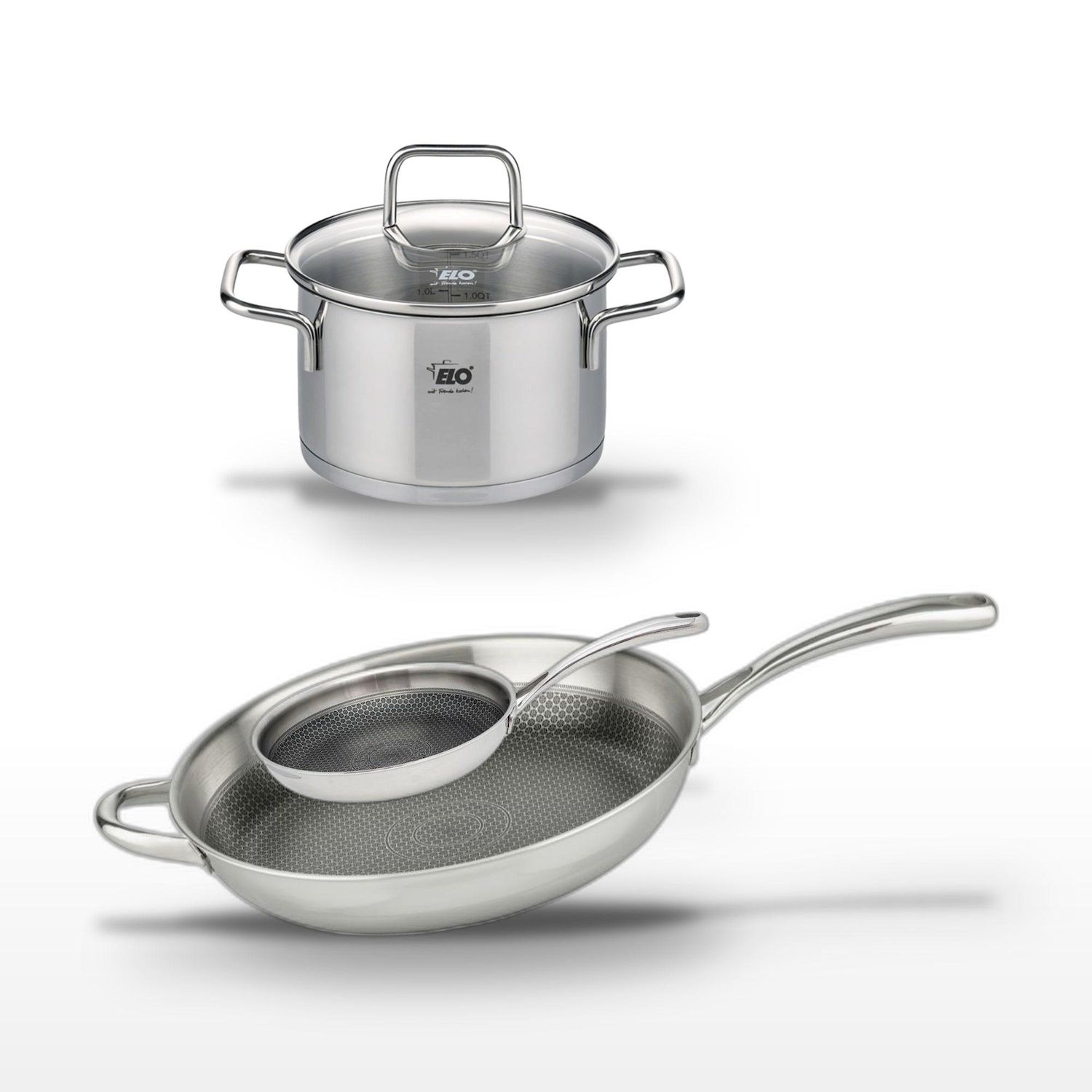 Lot Poêles 32cm et 24cm Elo Relief Evolution et Faitout 12cm