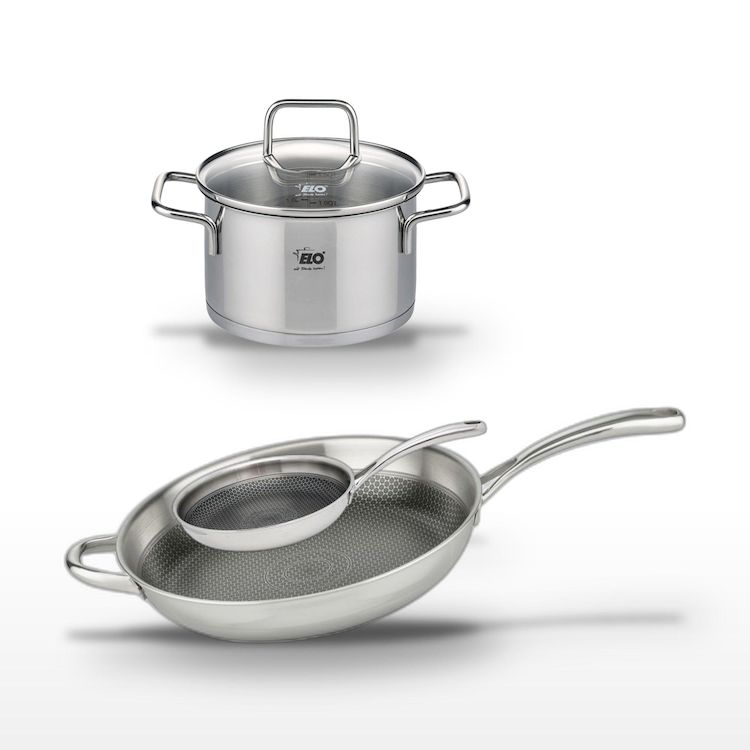 - DESCRIPTION : DESCRIPTION : Ce lot Elo Relief Evolution inclut deux poêles en inox de 32 cm et 24 cm, et un faitout de 12 cm. Les poêles sont dotées d'un revêtement antiadhésif sans PFAS pour une cuisson saine.