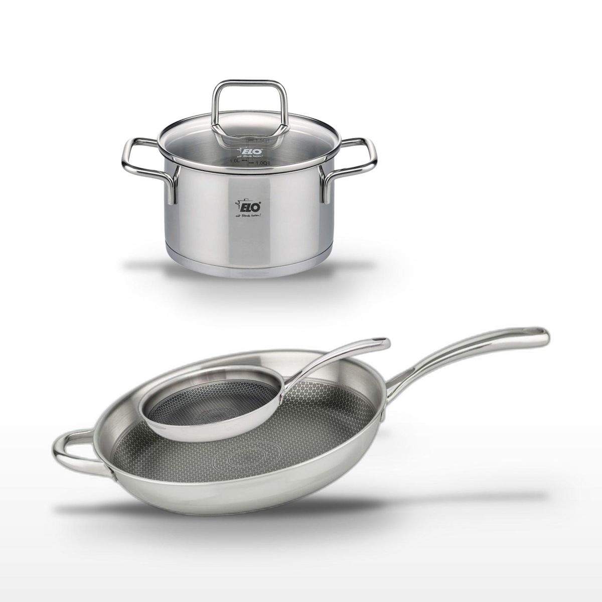 - DESCRIPTION : L'ensemble Elo Relief Evolution propose deux poêles en inox de 32cm et 24cm avec revêtement ELODUR® Professional et un faitout de 16cm. Idéal pour une cuisson saine et homogène.