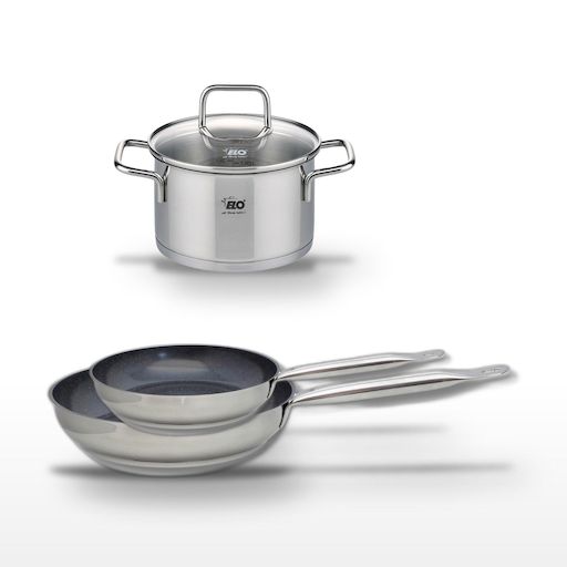 - DESCRIPTION : DESCRIPTION : Ensemble Elo avec poêles céramique 28 cm et 24 cm, et faitout 12 cm. Cuisson saine et uniforme grâce au revêtement ELODUR®.