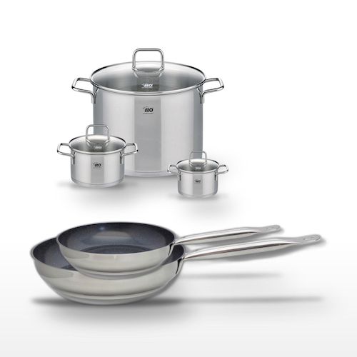 - DESCRIPTION : DESCRIPTION : Ce lot comprend deux poêles céramiques Elo Profi Therm Platinum et trois faitouts en inox Elo Citrin, parfaits pour une cuisine saine.