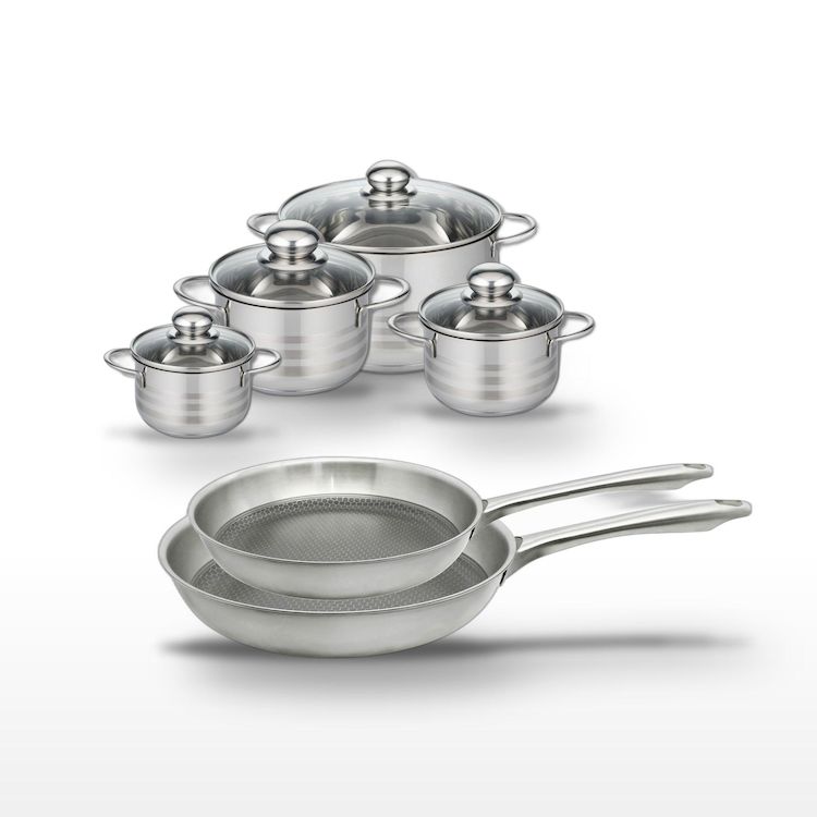 - COMPOSITION : Acier inoxydable de haute qualité, revêtement antiadhésif sans PFAS, couvercles en verre résistant aux chocs.
