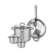 - PETIT + : Polyvalent, ce set de cuisson en inox permet de préparer une multitude de plats grâce à ses différentes tailles de poêle et marmites , les couvercles en verre des faitouts permettent de surveiller la cuisson sans perdre de chaleur