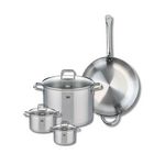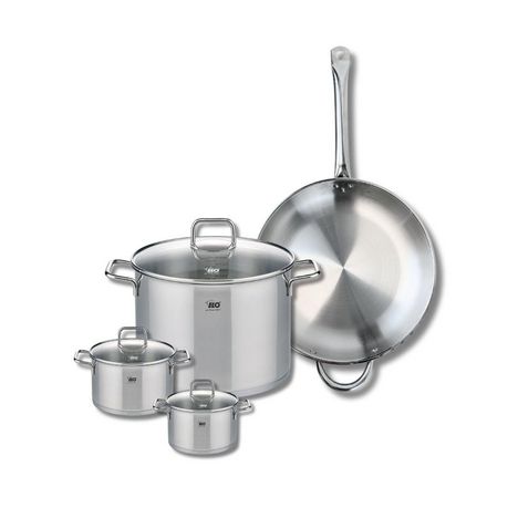 - DESCRIPTION : Cette batterie de cuisine ELO sans PFAS comprend une poêle à frire en inox 18/10 de 32 cm, et 3 faitouts avec couvercles en verre de tailles assorties, 12 cm, 14 cm et 26 cm, pour s'adapter à tous vos besoins