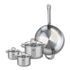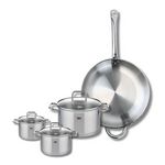 - PETIT + : Polyvalent, ce set de cuisson en inox permet de préparer une multitude de plats grâce à ses différentes tailles de poêle et marmites , les couvercles en verre des faitouts permettent de surveiller la cuisson sans perdre de chaleur