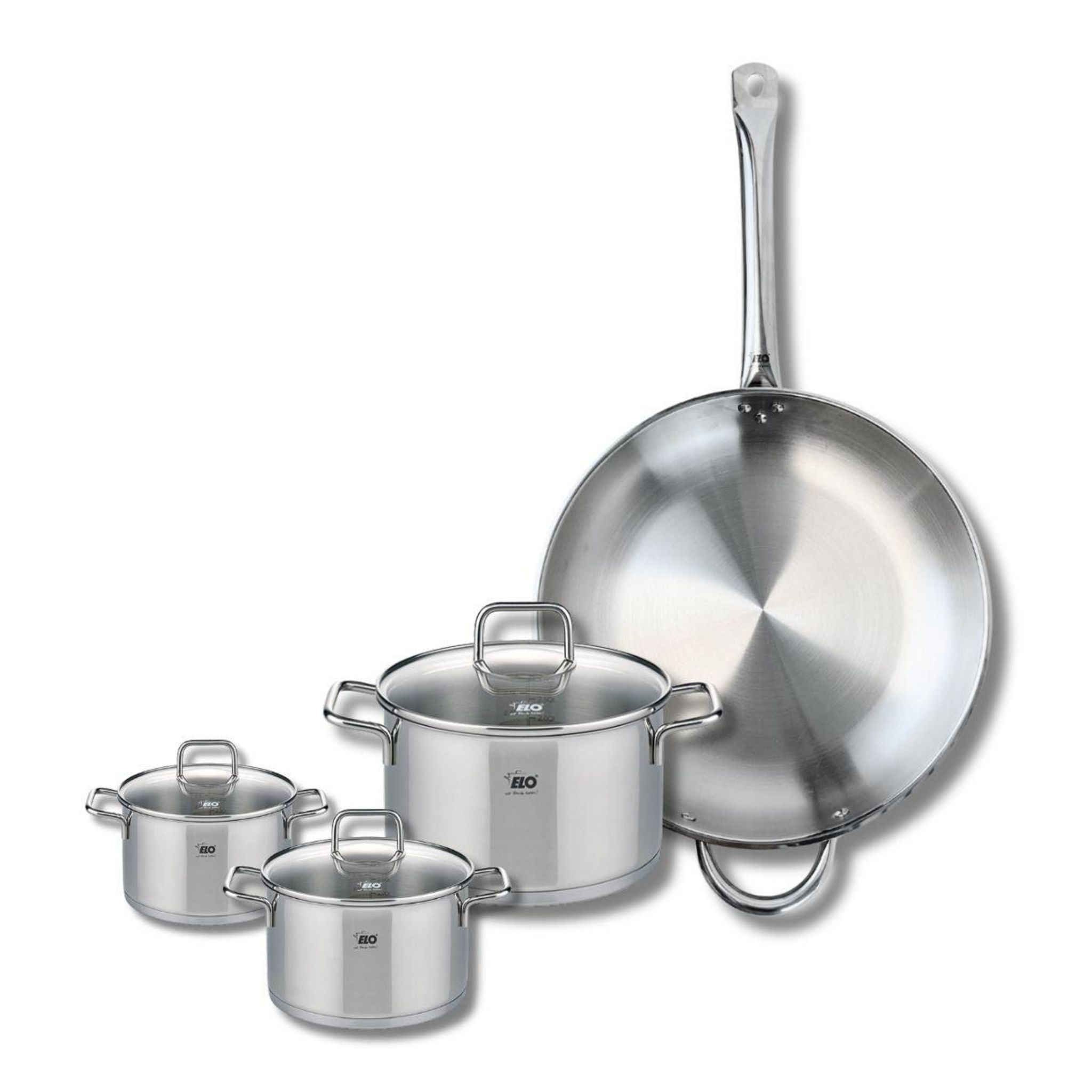- DESCRIPTION : Cette batterie de cuisine ELO sans PFAS comprend une poêle à frire en inox 18/10 de 32 cm et 3 faitouts avec couvercles en verre de différentes tailles 12 cm, 16 cm et 20 cm, pour s'adapter à toutes vos cuissons
