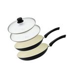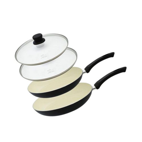 - COMPOSITION : Ces poêles de cuisine sont en aluminium, matériau léger et conducteur de chaleur, revêtu de céramique de haute qualité , couvercles en verre à bords inox résistants aux chocs et à la chaleur , poignées plastiques avec protection métal