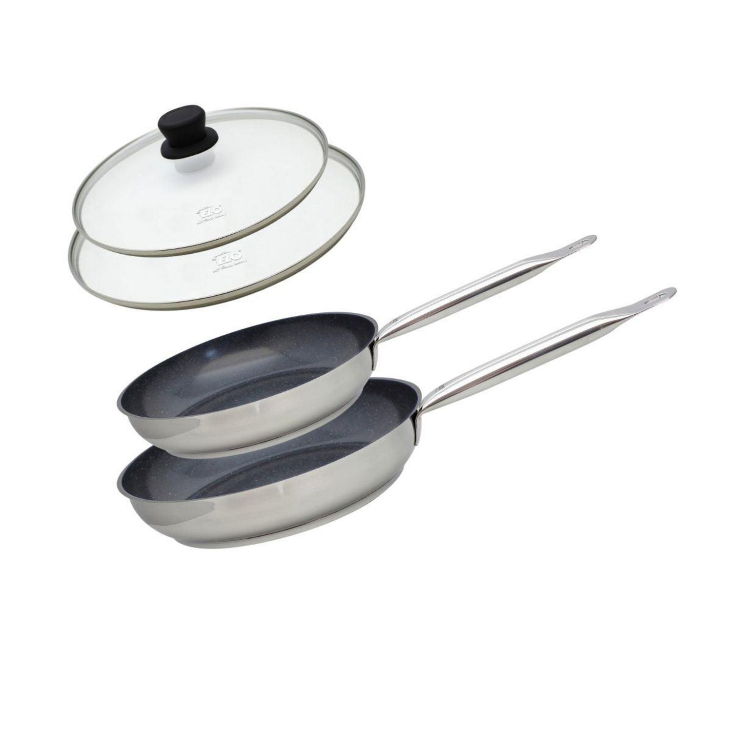 - COMPOSITION : Ces poêles sont en acier inoxydable 18/10, réputé pour sa durabilité et sa conductivité thermique , le revêtement céramique ELODUR® Professional est sans PFAS et hautement résistant aux rayures , les couvercles sont en verre et inox