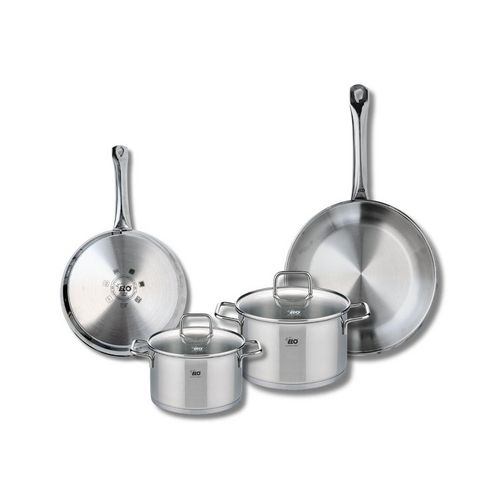 Découvrez le set de 2 poêles de cuisson et 2 faitouts Elo Profi Citrin, un ensemble essentiel pour tous vos besoins culinaires. Composé de poêles de 24 et 28 cm, ainsi que de faitouts de 16 et 20 cm, cet ensemble en inox est conçu pour s'adapter à toutes les sources de chaleur, y compris l'induction.