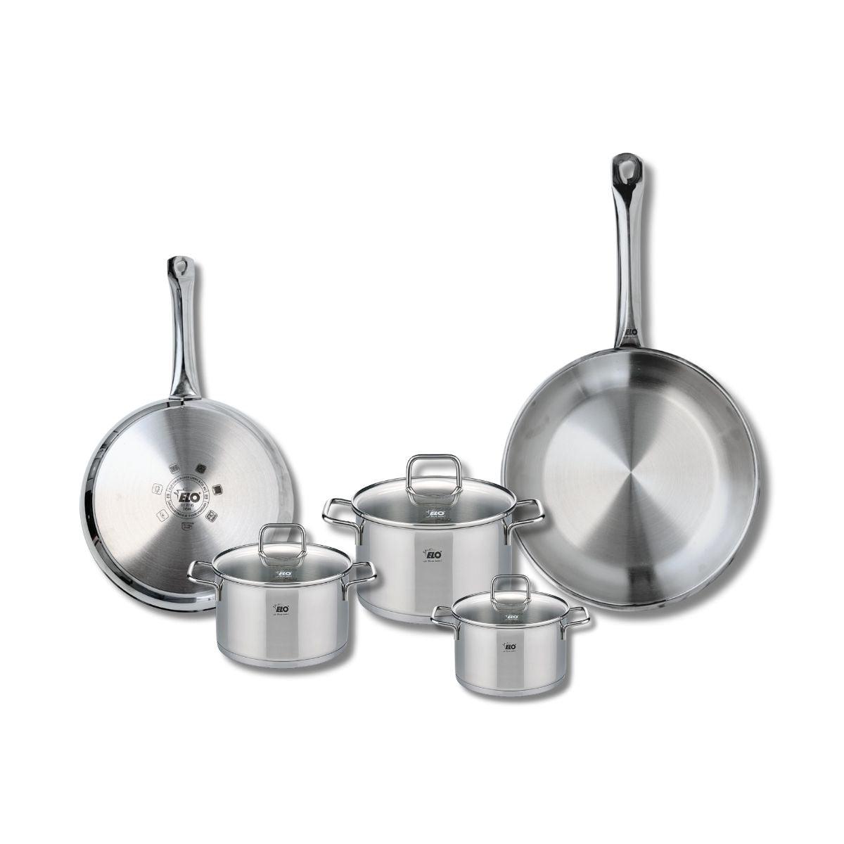 Découvrez le set de cuisine Elo Profi Citrin, une batterie de 8 pièces alliant élégance et performance. Ce lot comprend deux poêles de cuisson de 24 et 28 cm, ainsi que trois faitouts de 12, 14 et 16 cm, tous conçus en inox de haute qualité, parfaits pour une utilisation sur toutes les plaques de cu
