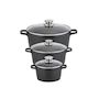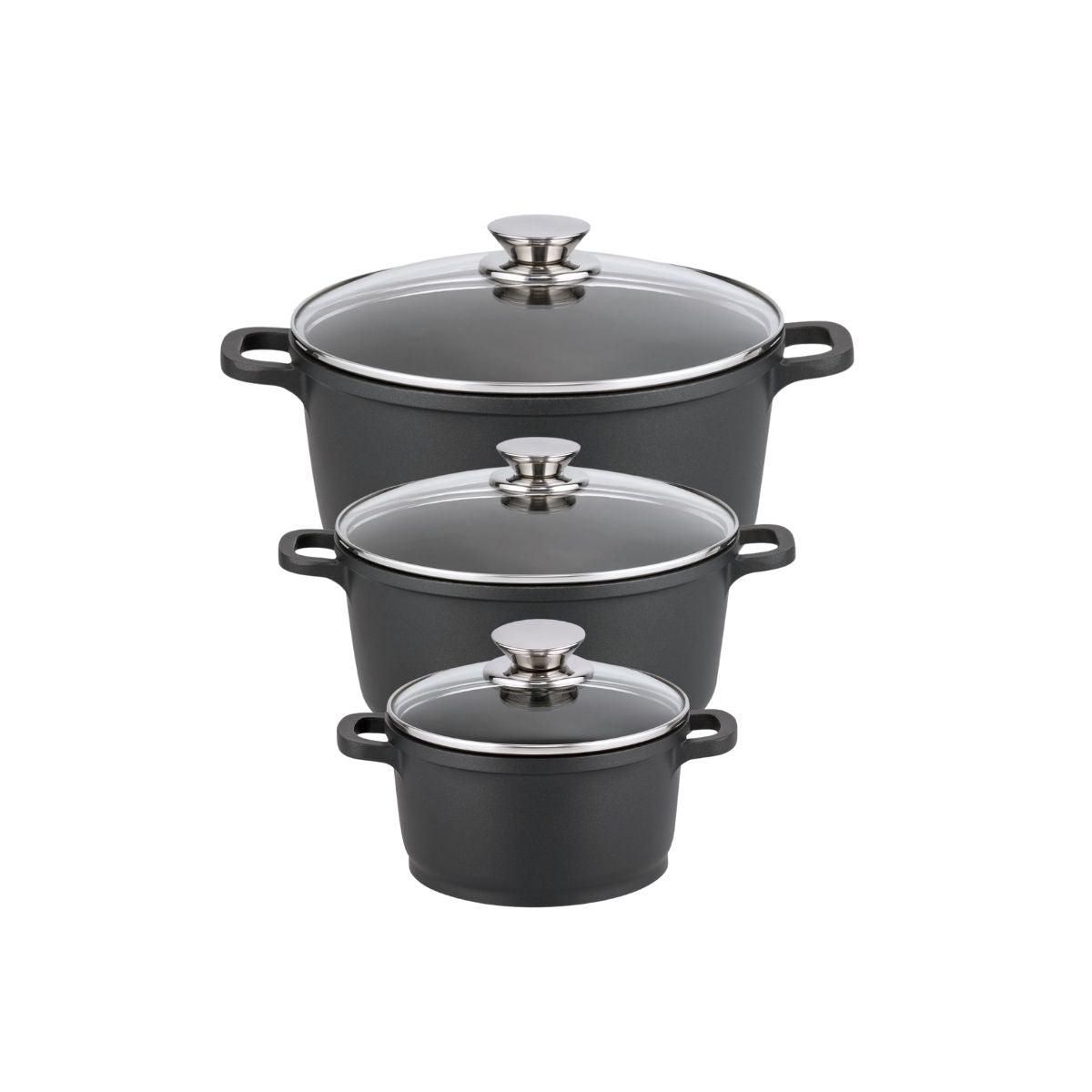Set de 3 faitouts 16 cm 20 cm et 24 cm sans PFAS avec couvercles en verre Elo Alucast