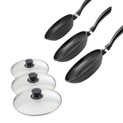 Elo vous propose cet ensemble de 3 poêles à frire avec couvercles de 20, 24 et 28 cm de diamètre.