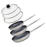 Set de 3 Poêles 24, 28 et 32 cm céramique sans PFAS et 3 couvercles Profi Therm Platinum Elo