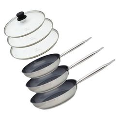 Cet ensemble de trois poêles en inox professionnelles munies de couvercles en verre et inox est un véritable atout pour votre cuisine. Grâce à leurs tailles différentes, elles s'adaptent à tous vos besoins, du simple œuf au plat à la préparation de grandes quantités de légumes sautés. Leur compatibilité avec tous les feux, y compris l'induction, et leur fond capsulé à économie d'énergie en font des ustensiles de cuisson polyvalents et performants.