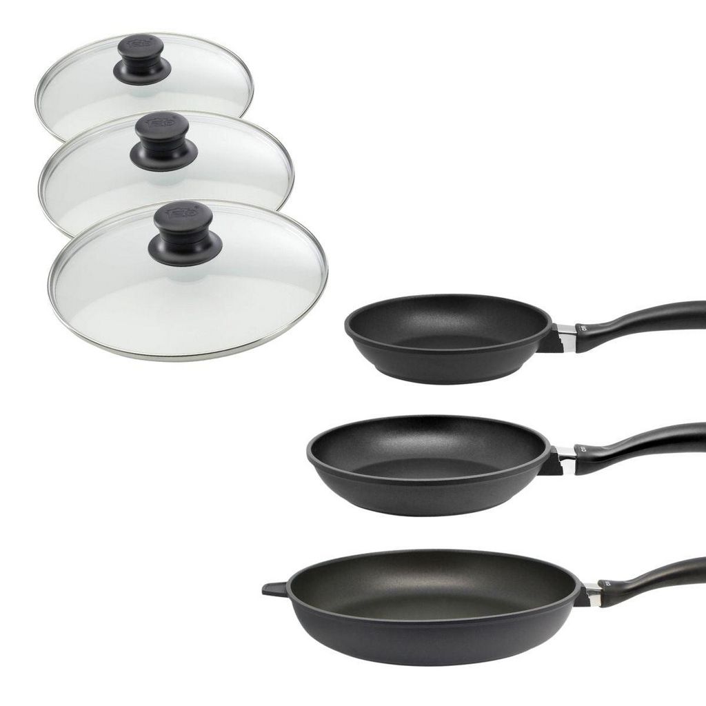 - COMPOSITION et ENTRETIEN : Poêles en fonte d'aluminium avec un revêtement anti-adhérent en céramique Elodur 100% sans PFAS, Couvercles en Acier inoxydable, Verre, Plastique | Lavage facile à l'eau et au liquide vaisselle, passage au lave-vaisselle possible