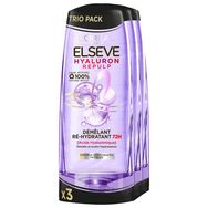 Formule enrichie en Acide Hyaluronique : Retient l'hydratation pendant 72H* les cheveux sont 10x plus hydratés* *Test instrumental après plusieurs applications du shampooing et du démêlant de la gamme
