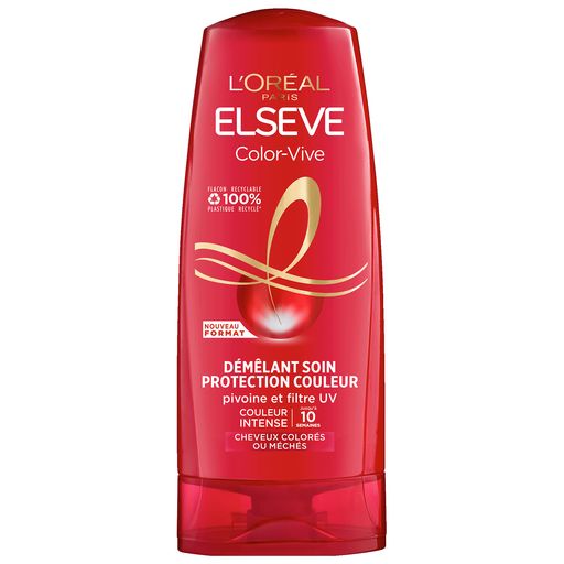Elseve, Color-Vive, L'Oréal Paris, Démêlant après-shampoing Cheveux Secs, Cheveux colorés, Cheveux ternes, cheveux méchés, pivoine, démêlant après-shampoing soin protecteur de couleur, filtre UV, Brillance, Nutrition, Fluidité, couleur éclatante, couleur prolongée, couleur protégée, couleur terne