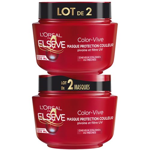Elseve, Color-Vive, L'Oréal Paris, Masque, Cheveux Secs, Cheveux colorés, Cheveux ternes, cheveux méchés, pivoine, masque protecteur de couleur, masque protection couleur, filtre UV, Brillance, Nutrition, Fluidité, couleur éclatante, couleur prolongée, couleur protégée.
