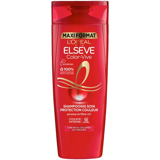 Elseve, Color-Vive, L'Oréal Paris, Shampoing Cheveux Secs, Cheveux colorés, Cheveux ternes, cheveux méchés, pivoine, Shampoing soin protecteur de couleur, Shampoing protection couleur, filtre UV, Brillance, Nutrition, Fluidité, couleur éclatante, couleur prolongée, couleur protégée, couleur terne