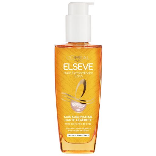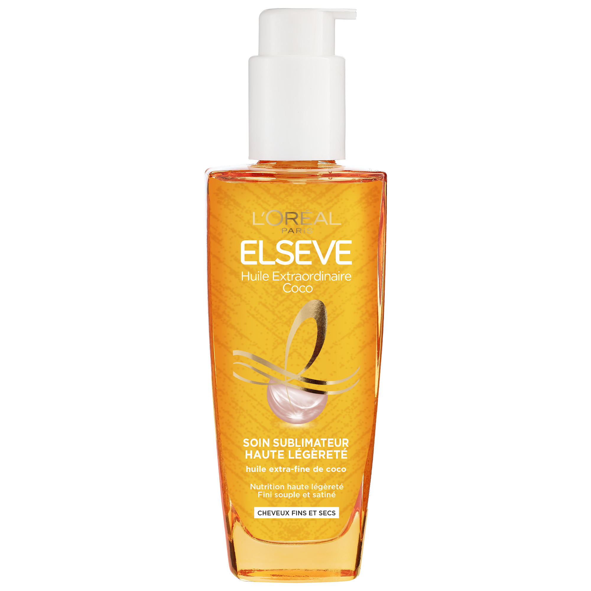 huile, huile capillaire, cheveux normaux à secs, huile sublimatrice, huile transformatrice, huile nourrissante, huile extra fine de coco, huile disciplinante, huile multi-usages, L'Oréal Paris, Huile Extraordianaire, brillance, souplesse, soin cheveux très secs, Huile extraordinaire Coco, Elseve