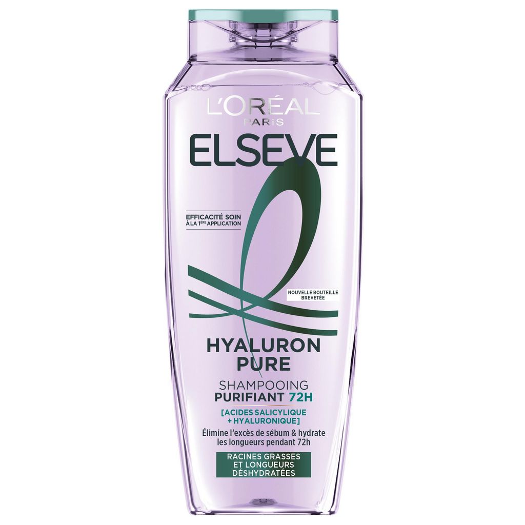 L'Oréal Paris, L'Oreal Paris, Elsève, Elseve, Hyaluron Pure, Soin Cheveux, Purifiant Cuir Chevelu, Cuir Chevelu, Cheveux Ternes, Cheveux Gras, Acides Salicylique et Hyaluroniques, Acide Hyaluronique, Acide Salicylique, Shampooing, Shampoing, Shampooing Purifiant, Flacon Recyclable, Plastique recyclé, Fabriqué en France, Made in France, Efficacité Soin, Racines Grasses, Excès de Sébum, Sébum Cheveux, Cuir Chevelu Gras, Shampooing Homme, Shampooing Femme, Tous Types de Cheveux, Shampooing Mixte