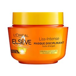 Elseve, Liss-Intense L'Oréal Paris, Masque, Crème, Cheveux secs, Cheveux difficiles à lisser, lissage difficile, huile d'argan, Cheveux disciplinés, fristottis, anti-frisottis, cheveux souples, cheveux nourris.