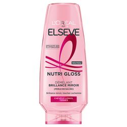 L'Oréal Paris, L'Oreal Paris, Elseve, Elsève, Démêlant, Après-Shampooing, Après-Shampoing, Perle de Nacre, Nutri Gloss, Cheveux Longs, Cheveux Ternes, Nourrit, Adoucit, Illumine, Brillance Miroir, Cheveux Brillants, Toucher Cachemire, Cheveux Soyeux, Protecteur, Cheveux abimés, Flacon Recyclable, Plastique Recyclé, Fabriqué en France, Made in France, Efficacité Soin, Tous Types de Cheveux