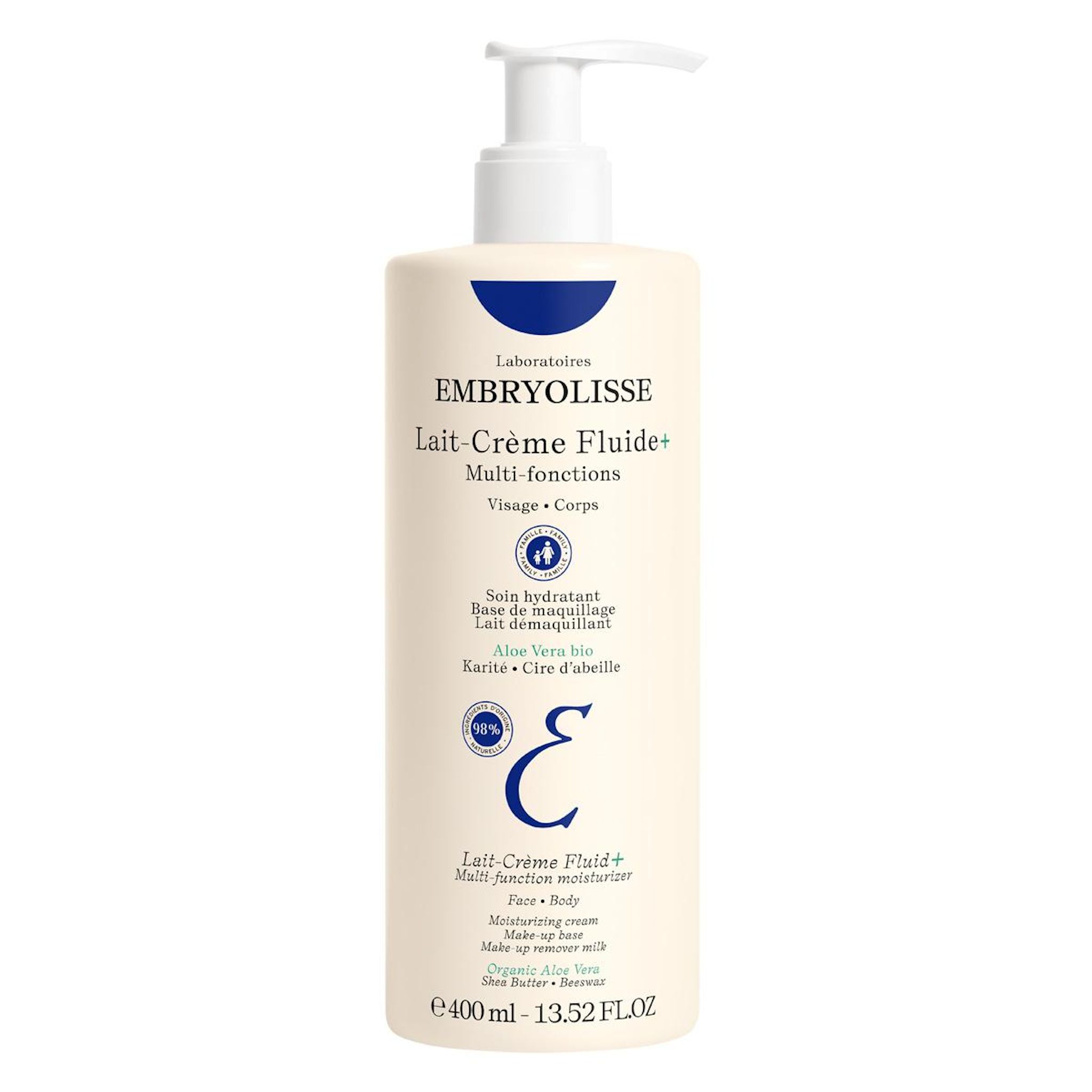 Composé à 98% d’ingrédients d’origine naturelle, Le Lait-Crème Fluide+ reprend les mêmes vertus ultra-hydratantes et nutritives du célèbre Lait-Crème Concentré dans une texture fluide. Soin multi-fonctions 6 en 1, il s'utilise comme : hydratant visage et corps, base de maquillage, nettoyant-démaquillant, après-soleil, après-rasage. Vite pénétré, il laisse la peau douce et confortable.