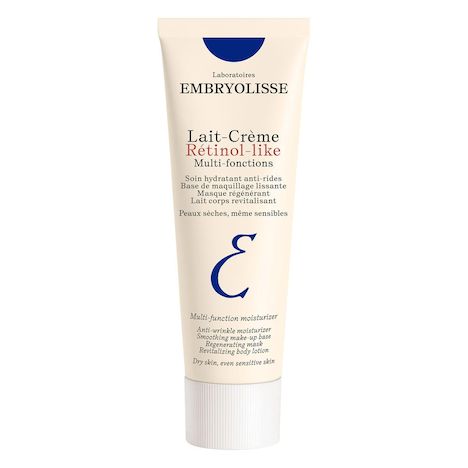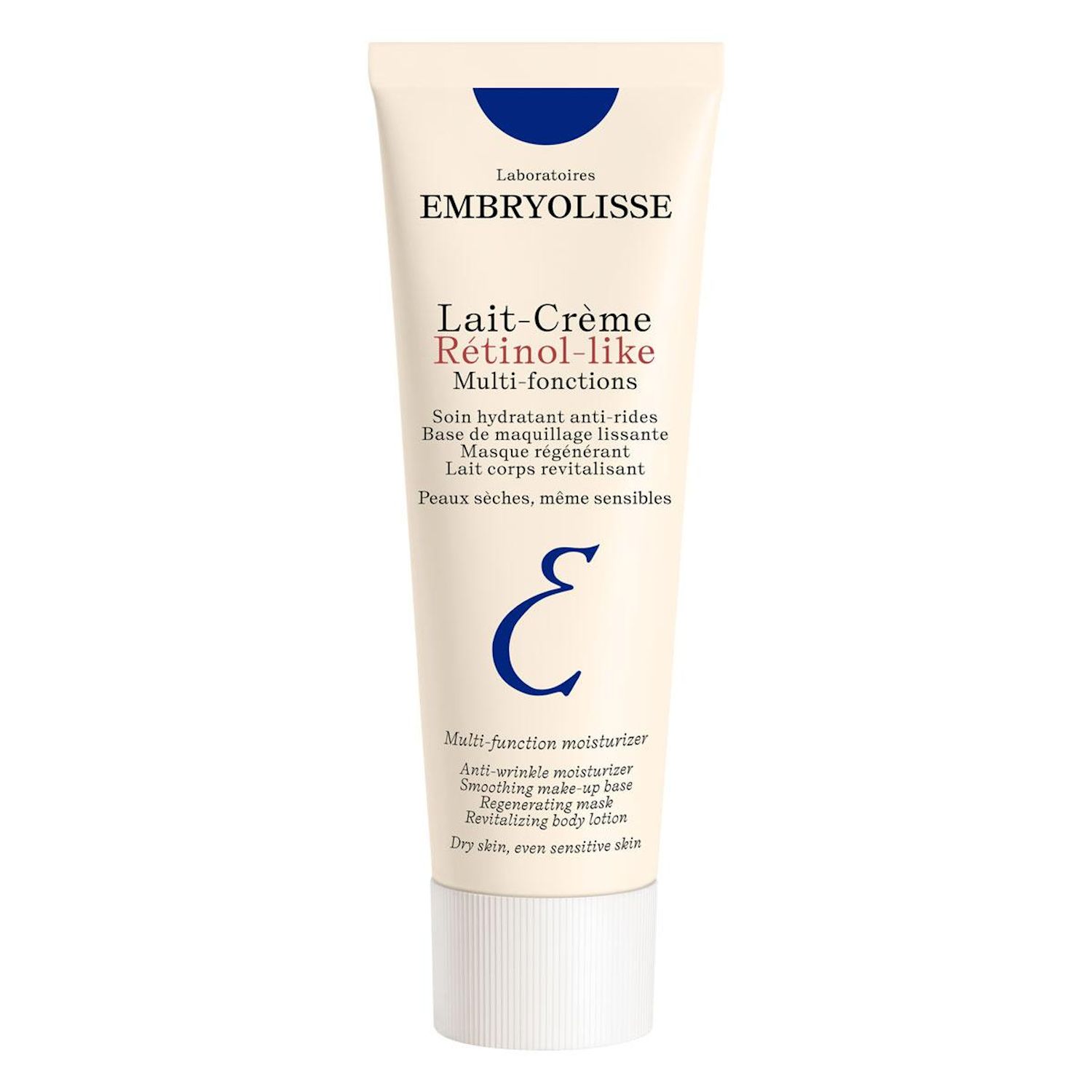 Le Lait-Crème Rétinol-like Embryolisse, le savoir-faire "Lait-Crème" multi-fonctions dans une formulation nutritive au Rétinol-like végétal. Ce soin à la texture riche et crémeuse, apporte une réponse anti-ride complète et efficace. Soin multi-fonctions, il peut à la fois s'utiliser comme soin hydratant anti-rides, base de maquillage lissante, masque régénérant, crème de nuit redensifiante et lait corps revitalisant. Les rides sont réduites, la peau est visiblement plus jeune, plus souple et confortable. Le nouvel actif Rétinol-like végétal 100% français offre une action anti-rides puissante sans les effets indésirables du Rétinol. Une alternative d'origine naturelle et surdouée, performante et accessible, sans compromis sur l'efficacité et la tolérance, puisqu'il convient même aux peaux sensibles. Il hydrate, nourrit et protège toutes les peaux grâce à l'Aloe Vera bio, la Cire de Carnauba bio et le Beurre de Karité.