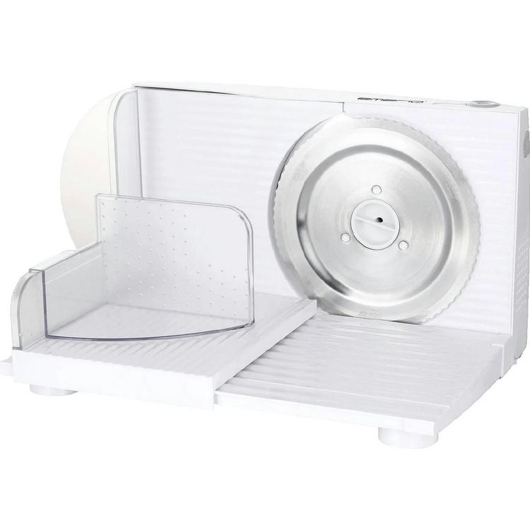 Découvrez la trancheuse Emerio MS-125000, un accessoire de cuisine électrique idéal pour trancher vos aliments avec précision. Dotée d'une lame en acier inoxydable amovible, elle offre une puissance de 100 W et une épaisseur de coupe réglable de 0 à 17 mm. Conçue sans BPA, elle est pliable pour un rangement facile et équipée de pieds antidérapants pour une utilisation sécurisée. Le bouton marche/arrêt garantit une sécurité optimale. Son câble de 1 mètre permet une bonne mobilité. Cette trancheuse blanche allie praticité, sécurité et qualité pour améliorer votre expérience culinaire.