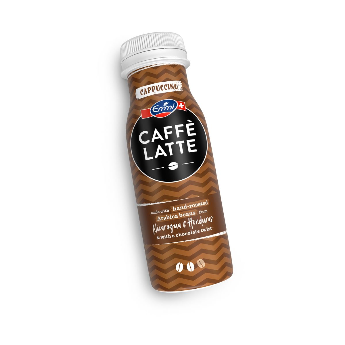 lait partiellement écrémé 80%, café Arabica brassé* 15%, sucre, cacao maigre en poudre* 0,1%. UHT. Teneur en caféine: 74 mg par bouteille