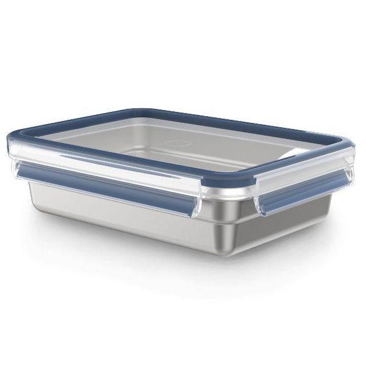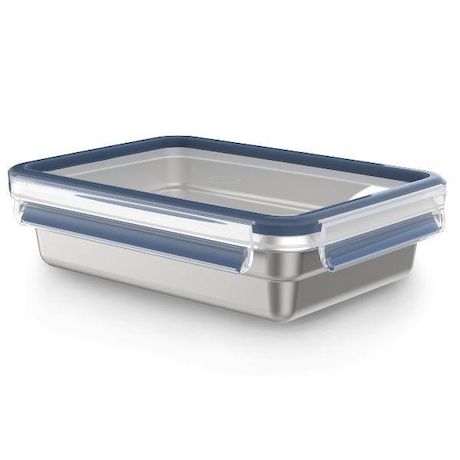 Emsa N1150500 Boîte alimentaire rectangulaire Clip & Close Inox N1150500 d'Emsa. La solution de conservation idéale pour un mode de vie sain, mobile et durable. Ces boîtes de conservation offrent une polyvalence totale et une fraîcheur durable. En acier inoxydable 18/10 : hygiénique, léger, extrêmement résistant, inodore, neutre en goût, facile à nettoyer et pratiquement indestructible. 100% étanches à l'air et incassables. Le couvercle à clipser possède un joint de fraîcheur unique qui assure une conservation hygiénique. Les aliments frais se conservent jusqu'à deux fois plus longtemps en limitant ainsi le gaspillage alimentaire. 100 % résistant au froid : compatible pour une utilisation au réfrigérateur mais aussi au congélateur car l'acier inoxydable supporte les basse température jusqu'à -40°C. Compatible four traditionnel jusqu'à 250°C (sans le couvercle) : le récipient vous permettra de préparer de délicieux gratins, légumes rôtis et bien plus encore. Rebords pensés pour un empilage facile et un gain de place dans les placards. Nettoyage facile : passe au lave-vaisselle.