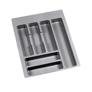 Ce range-couverts est recoupable, ce qui permet de l'adapter à des profondeurs entre 418 mm et 482 mm et à des largeurs entre 354 mm et 386 mm. Cette flexibilité facilite son installation dans divers types de tiroirs, rendant le produit universel et pratique pour une large gamme de cuisines.
