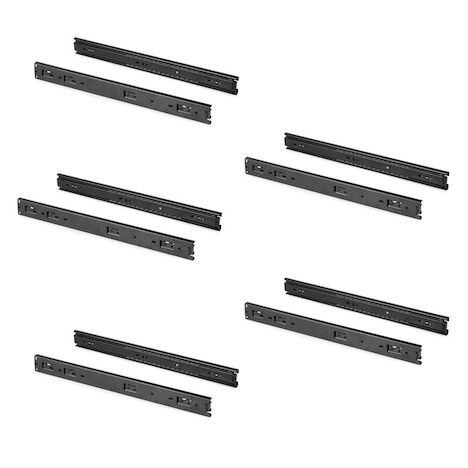 5 paires de coulisses a billes pour tiroirs à sortie totale, H 45 mm, L 600 mm, noir