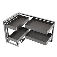 - Système d'angle extractible avec fermeture amortie pour meubles de cuisine d'angle, conçu pour le rangement et un accès facile aux ustensiles, aliments ou petits appareils électroménagers.
