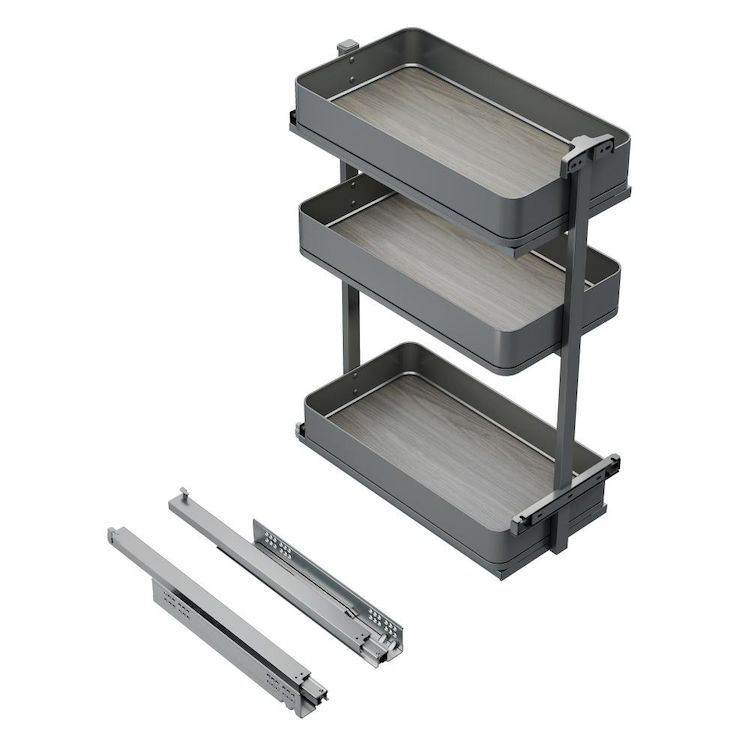 - Chariot coulissant avec 3 paniers, conçu pour maximiser le rangement et exploiter au mieux l'espace dans les meubles de cuisine – une solution à la fois fonctionnelle et esthétique.