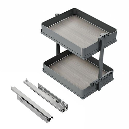 - Chariot coulissant avec 2 paniers, conçu pour maximiser le rangement et exploiter au mieux l'espace dans les meubles de cuisine – une solution à la fois fonctionnelle et esthétique.