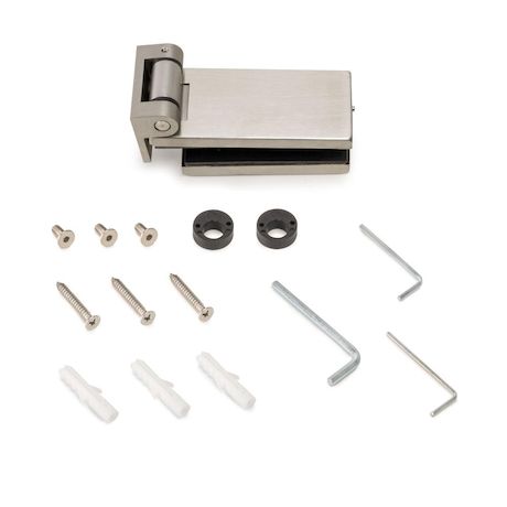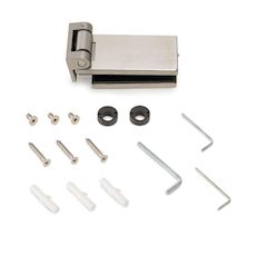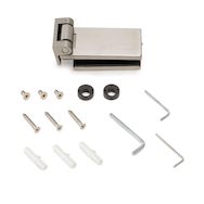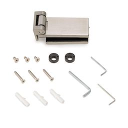 Charnière horizontale pour portes en verre avec garnitures en acier inoxydable. Idéale pour les portes en verre, les vitrines ou les portes de douche. La lame de la charnière mesure 34 mm, peut être installée sur des portes en verre d'une épaisseur de 8 à 12 mm et a une plage de pivotement de 180º.