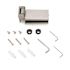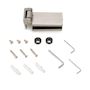 Charnière horizontale pour portes en verre avec garnitures en acier inoxydable. Idéale pour les portes en verre, les vitrines ou les portes de douche. La lame de la charnière mesure 34 mm, peut être installée sur des portes en verre d'une épaisseur de 8 à 12 mm et a une plage de pivotement de 180º. Elle est équipée d'anneaux excentriques qui permettent un réglage de ±2,5 mm. Deux charnières supportent 60 kg et 3 charnières 90 kg. Fabriqué en aluminium. Comprend une charnière et tout le matériel de montage.