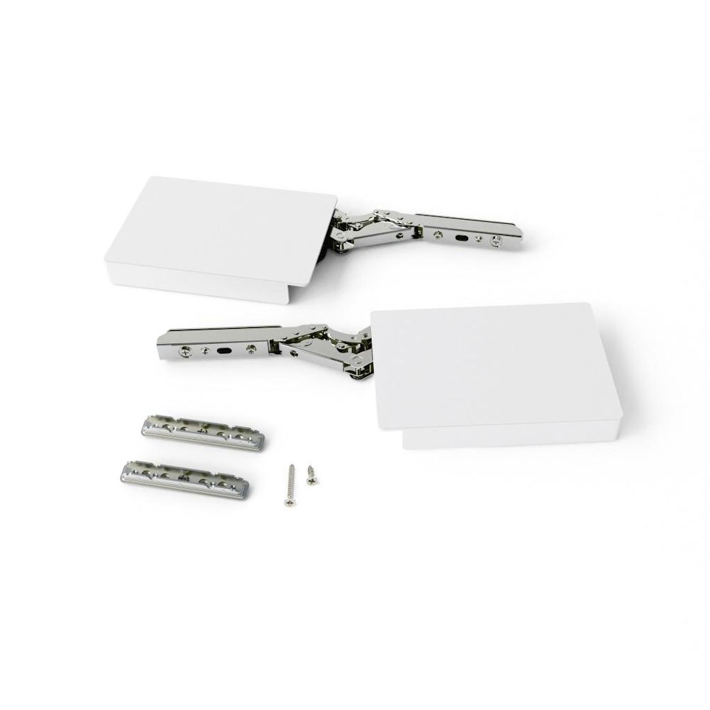 - Système de compas conçu pour les portes relevables sans charnières, avec fermeture à fermeture amortie et démontage sans outils grâce à son système d'encliquetage.