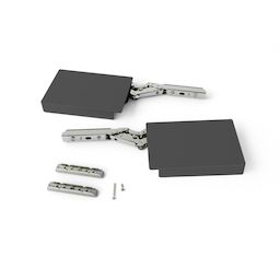 - Système de compas conçu pour les portes relevables sans charnières, avec fermeture à fermeture amortie et démontage sans outils grâce à son système d'encliquetage.