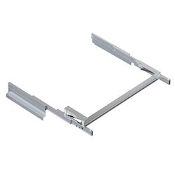 Les guides sont reliés par un profil qui donne une plus grande stabilité à l'ensemble, si nous voulons monter le système dans une largeur de module inférieur à 900 mm, nous devrons couper ce profil stabilisateur pour l'ajuster à la largeur requise. De plus, le mécanisme comporte des ressorts qui facilitent le mouvement de levage du mécanisme. Les panneaux qui constituent la surface du support ou la façade ne sont pas fournis.