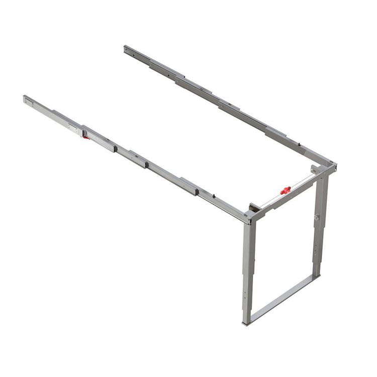 - Système d'extraction d'une table pliante cachée de 1 380 mm de long avec double jambe télescopique. Système conçu pour la cuisine, mais pouvant être utilisé dans d'autres pièces de la maison.