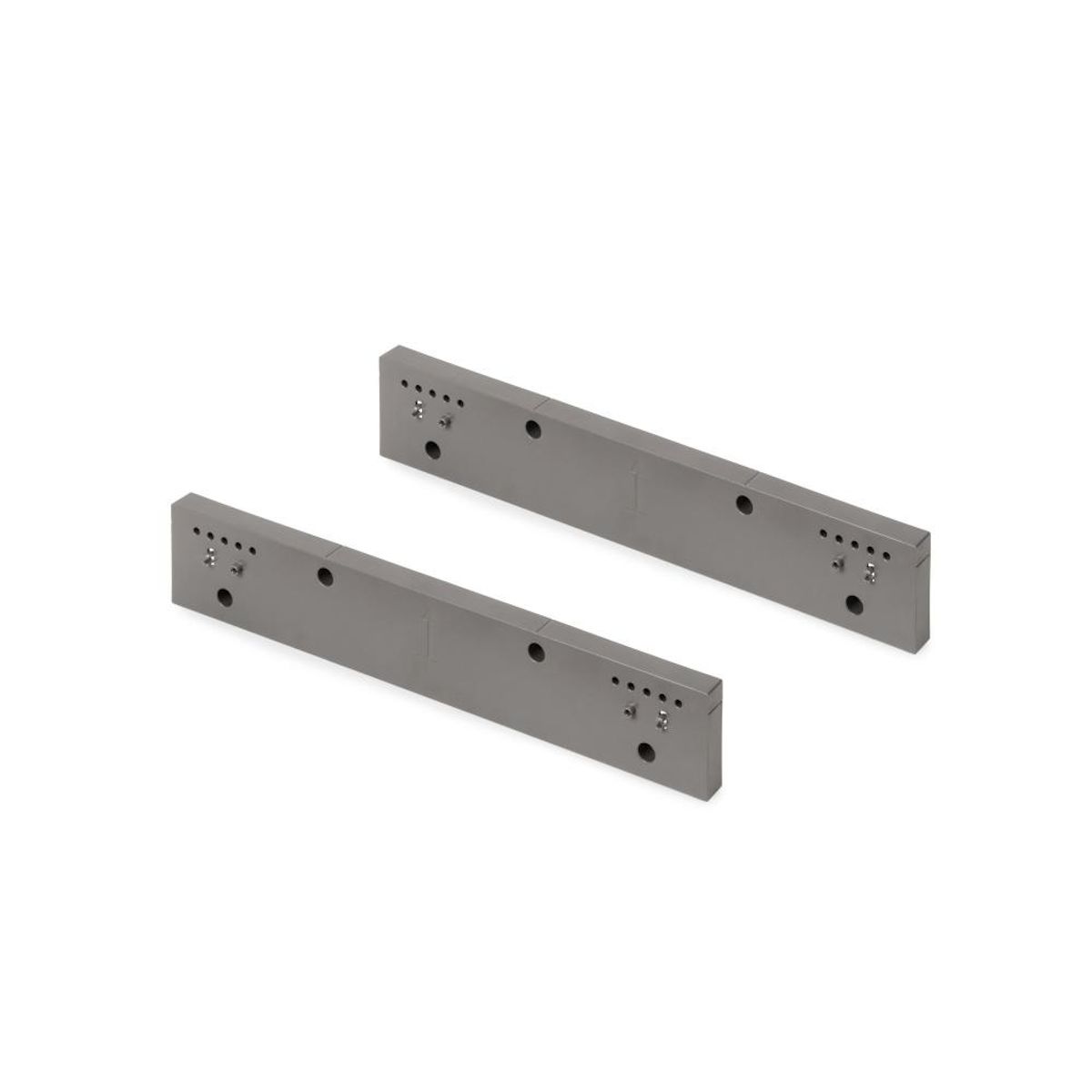 L'entretoise est d'abord installée sur le meuble avec des vis Ø3,5x45mm, puis le rail peut être prémonté sur l'entretoise avec les clips inclus et enfin l'ensemble est fixé sur le côté avec des vis Ø3,5x35mm. Il est fabriqué en plastique avec une finition en titane et se distingue par sa conception polyvalente, qui lui permet d'être utilisé sur le côté droit ou gauche du module.